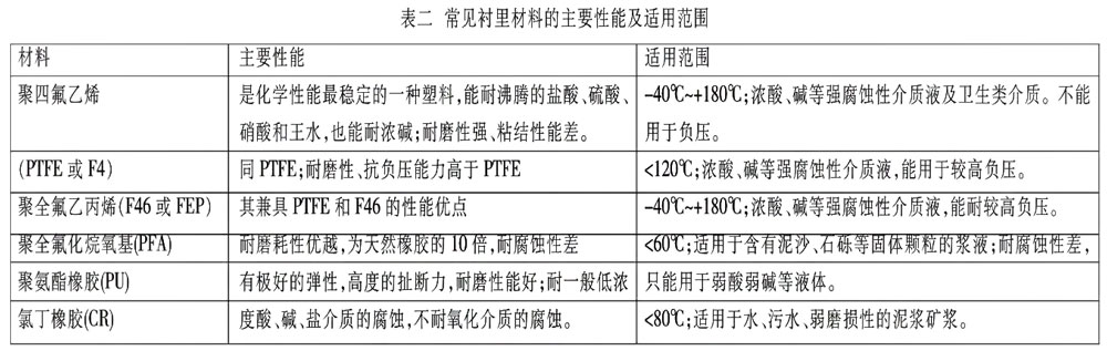 2.測(cè)量管襯里材料的選型及應(yīng)用
