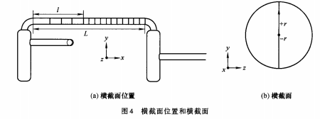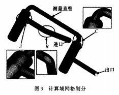電磁流量計測量直管上、下游擾流件分別為90°彎管,數值研究幾何模型見圖3,**方向為+Z軸方向,出口方向為+X軸方向。管路**和出口如圖所示,**側和出口側的兩個壓力罐用來穩定水流,兩個壓力罐之間的管路為測量直管。在本文中,測量直管內徑D分別取500mm和800mm,流量工況分別為1.0、1.5和 2.0m3/s。