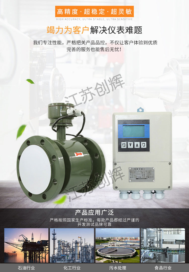 儀表系統測量精度高,使用范圍寬,不是可用于污水、水泥漿液礦漿液等的測量,還可用于強酸、強堿液體流量的測量。