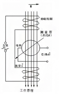 分體型電磁流量計的轉(zhuǎn)換器可遠離現(xiàn)場惡劣環(huán)境,電子部件檢查、調(diào)整和參數(shù)設(shè)定就比較方分體式電磁流量計測量原理是基于法拉第電磁感應(yīng)定律。流量計的測量管是一內(nèi)襯絕緣材料非導(dǎo)磁合金短管。兩只電極沿管徑方向穿通壁固定在測量管上。其電極頭與襯里內(nèi)表面基本齊平。勵磁線圈由雙向方波脈沖功磁時,將在與測量管軸線垂直的方向上產(chǎn)生一磁通量密度為B的工作磁場,此時,如果具有一定電導(dǎo)率的液體流經(jīng)測量管,將切磁力線感應(yīng)出電動勢E。電動勢E正比于磁通量密度B,測量管內(nèi)徑d與平均流速V的乘積。電動勢E(流量信號)由電極檢出并通過電纜送至轉(zhuǎn)換器。轉(zhuǎn)換器將流量信號放大處理后,可顯示流體流量,并能輸出脈沖,摸擬電流等信號,用于流量的控制和調(diào)節(jié).