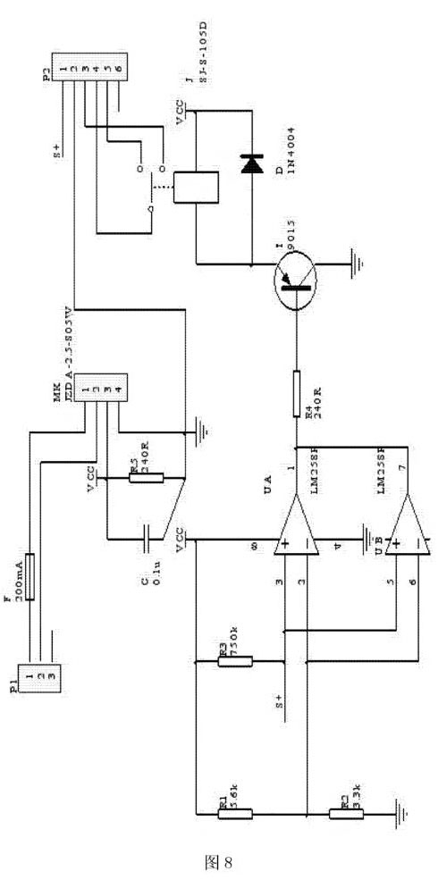 圖8為本新型裝置報(bào)警電路原理圖。