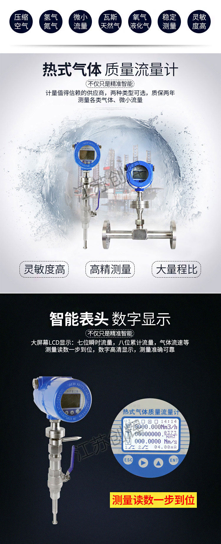 1、測量氣體質量流量,無需溫度、壓力補償。