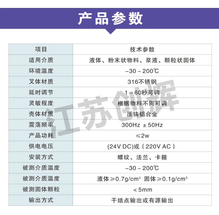 CH-YC-11音叉料位開(kāi)關(guān)媲美**品牌,性能指標(biāo)如下表: