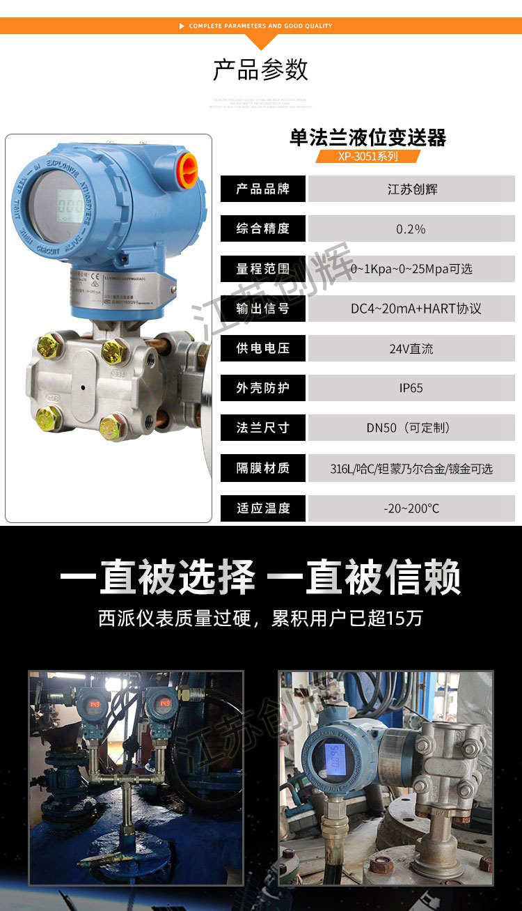 2、316膜片、HC、鈦膜片多種選擇,世界上***采用H合金護套的傳感器(**技術),幫助單法蘭液位變送器實現了優良的冷、熱穩定性